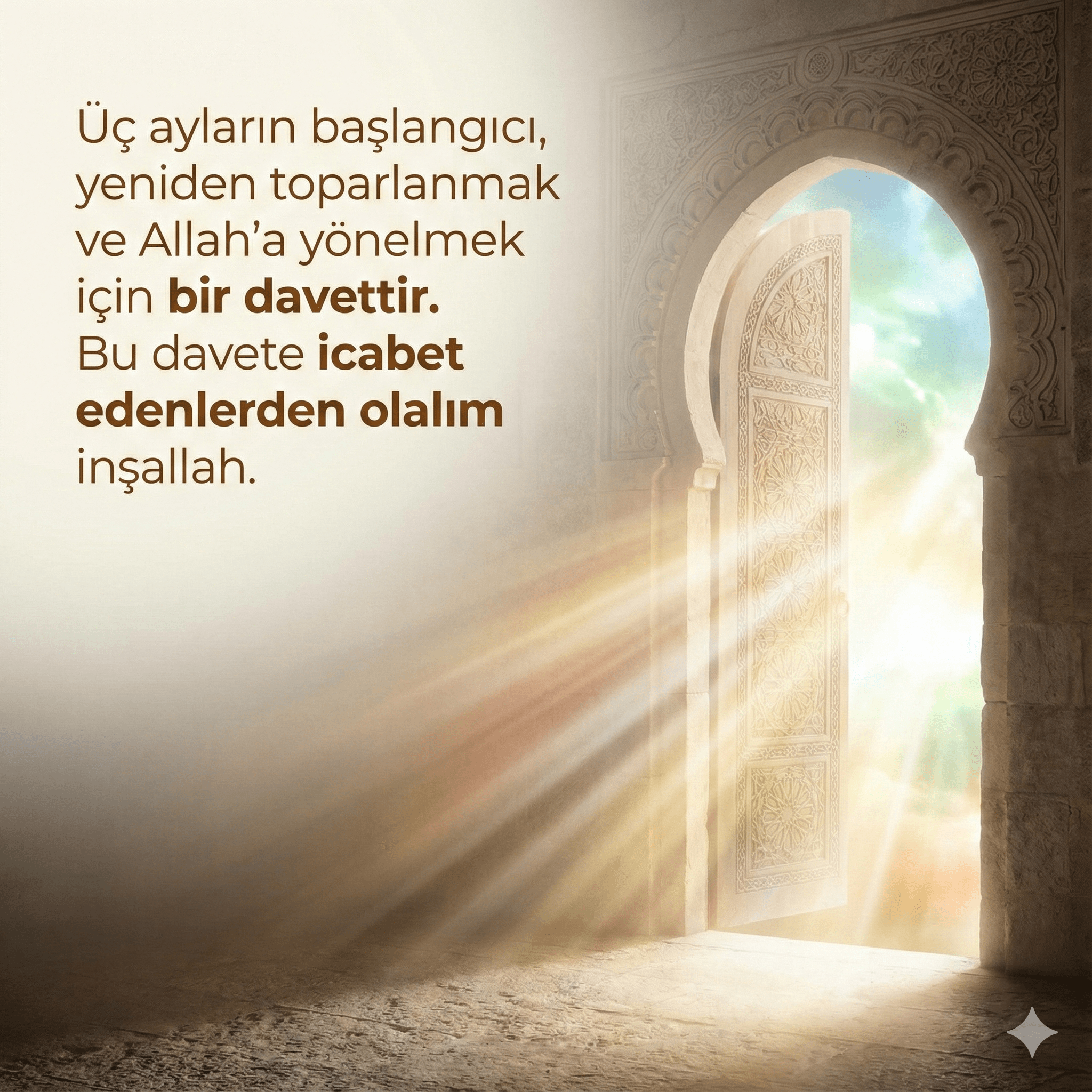 Mübarek Üç Aylar, manevi olarak yenilenmek, dualarla arınmak ve sevdiklerimizle gönül bağını güçlendirmek için çok özel bir zaman dilimi… Recep, Şaban ve Ramazan aylarını kapsayan bu mübarek dönemde, sevdiklerine anlamlı sözler göndermek istiyorsan, doğru yerdesin. Bu sayfada, sosyal medyada paylaşabileceğin, WhatsApp veya diğer uygulamalardan kolayca iletebileceğin en güzel Üç Aylar mesajları bir araya getirildi.
